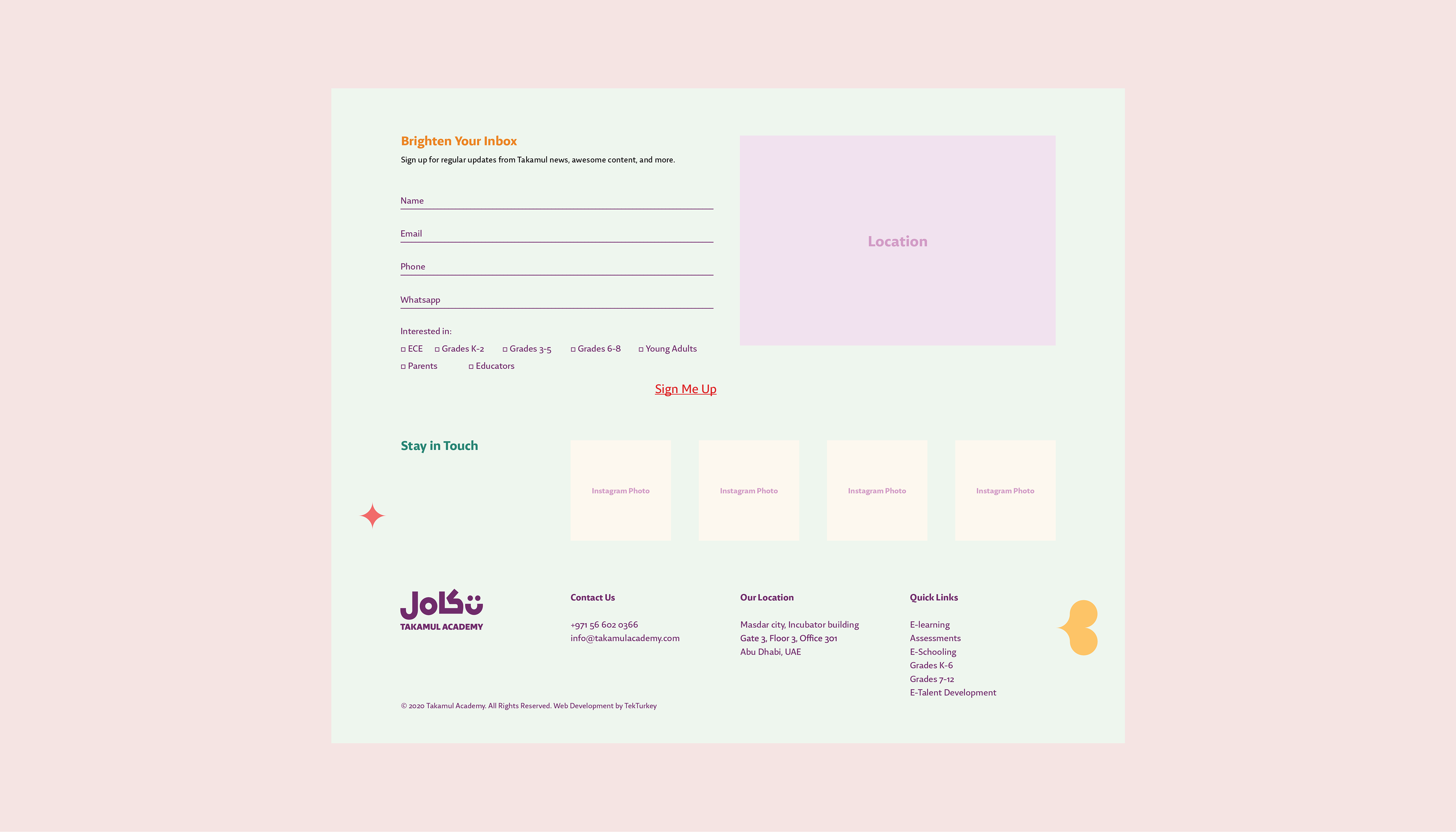 Overview: For this project, the brief was to create a visual identity that represents an edutainment community for children and mothers. Some keywords included: care, development, discovery, flexibility, gentleness, individuality, joy, and leadership.